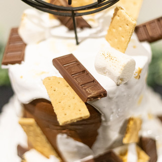 Colleen's Culinary Creations created a beautiful cake featuring s'mores and marshmallow melting down the side.